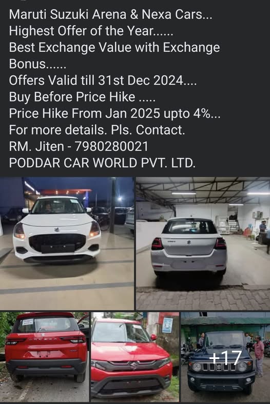 • Maruti Suzuki Arena & Nexa Cars offers till 31st Dec 2024.