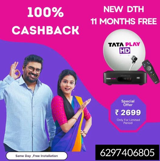Tata Play HD Price Rs. 2702 Call . 6297406805 Free 11 Month Pack. Free Delivery & Installation. Free Accessories – Tata Play Dish, Set Top Box, Remote, 10 Meter Wire, Adopter and HDMI cable. 1 Years Warranty. Cash on Delivery Available. Delivery in 4 Warking Hour contact name: Anonymous participant contact number: 6297406805